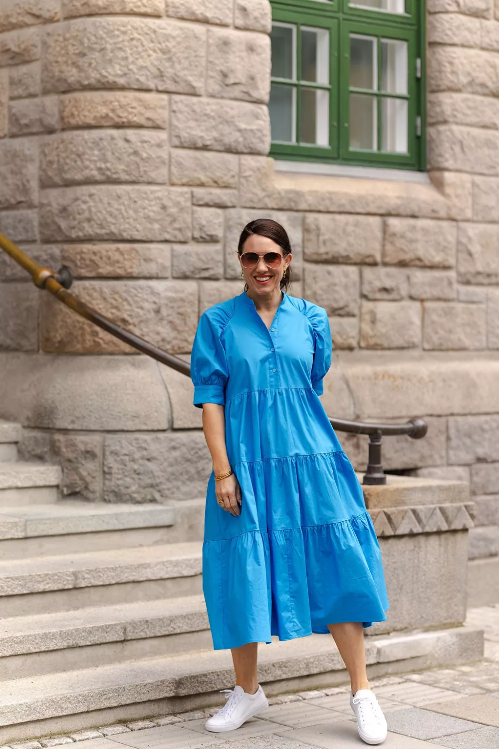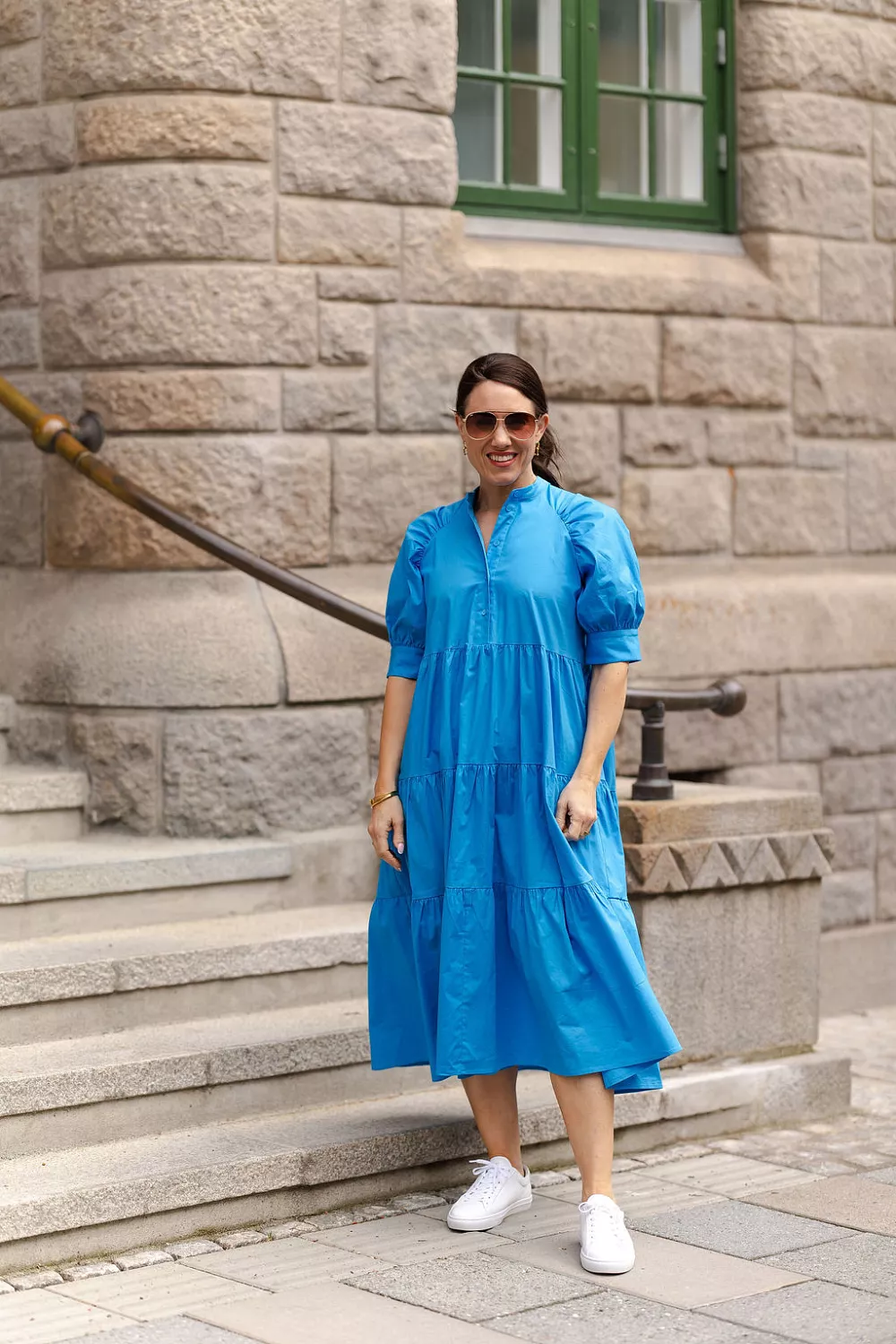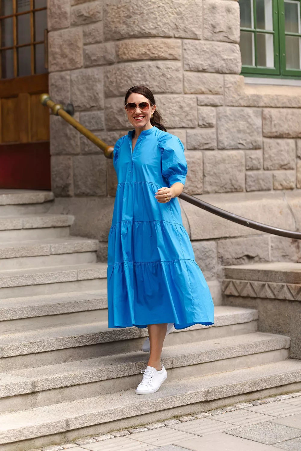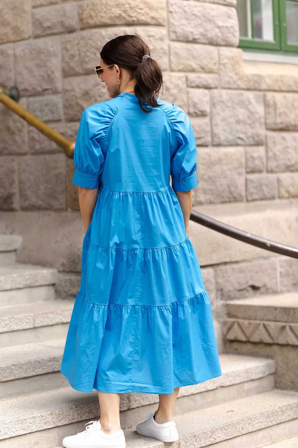Adore Kjole blå er den perfekte hverdagskjolen i en nydelig blåfarge! Kjolen har korte puffermer med mansjett og kinakrage med knepping ned mot livet. Semihøyt liv og skjørt med kapper som faller fint og gir en pen silhuett. Ledig fasong og stikklommer i sidene. Vipper du mellom to størrelser anbefaler vi å gå for den minste størrelsen.