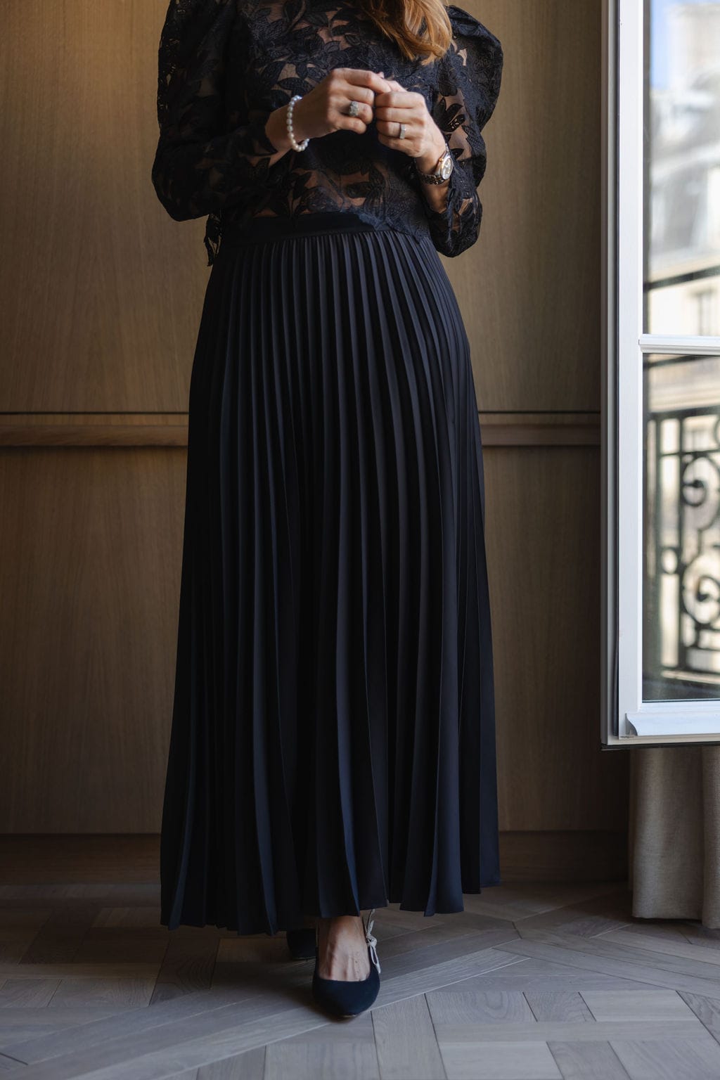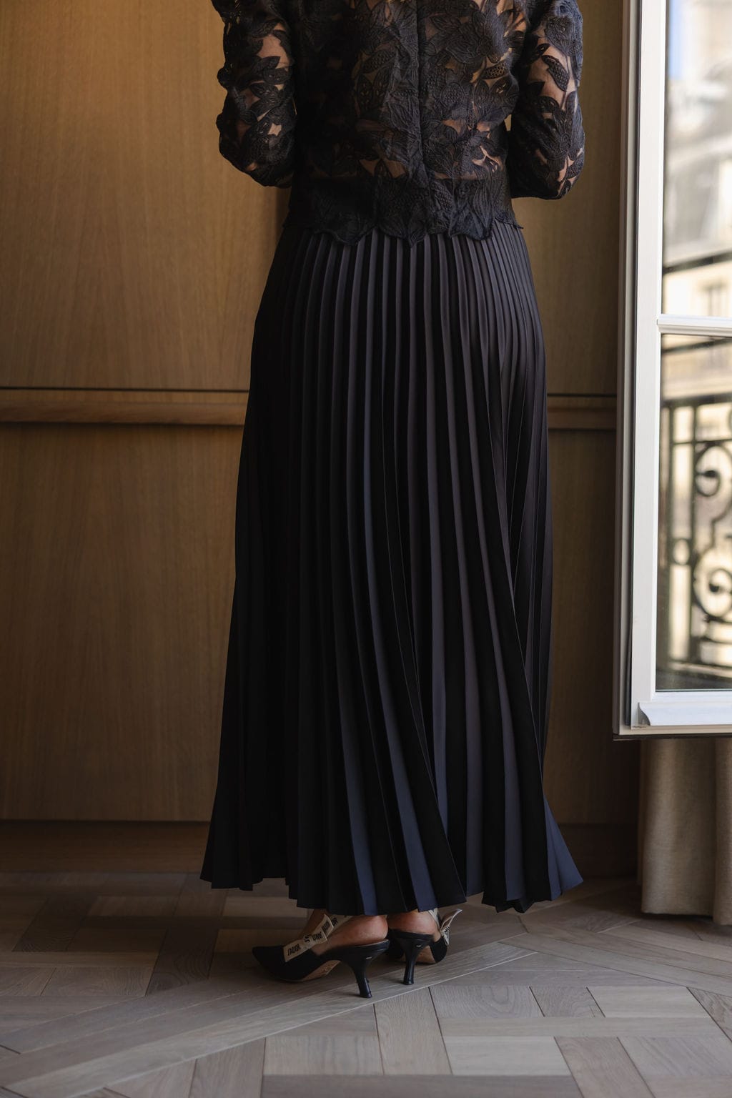 Beauty bluse sort er en lekker bluse med blomstrete hullbroderier og transparent meshkvalitet bak. Rund hals og lange ermer med feminin puffeffekt i skuldrene. Lukkes med skjult glidelås i ryggen og knapp i nakken. Innsvinget, kort fasong.