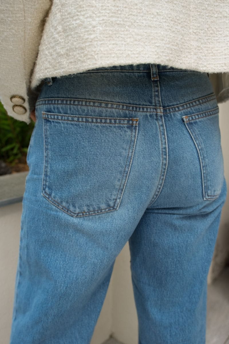 Designet er klassisk med 5 lommer og lukkes med glidelås og en dekorativ knapp, som du vil kjenne igjen som en gjennomgående detalj i våre jeansmodeller – et lite, men stilsikkert signaturpreg.