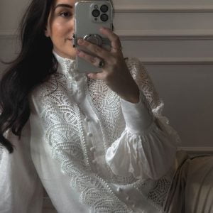 En pen kant nederst med små splitter i sidene gir toppen et ekstra preg av stil og finesse. Dette gjør at den skiller seg ut fra andre topper og legger til et snev av eleganse.