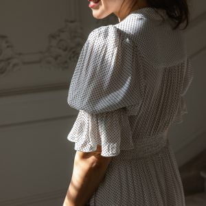 Camille Topp Rosa har en rund hals som gir et tidløst utseende, og de korte ermene med klokkefasong gir en feminin og luftig følelse. Den lette A-fasongen gir toppen en ledig og avslappet look, samtidig som den skaper en flatterende silhuett.