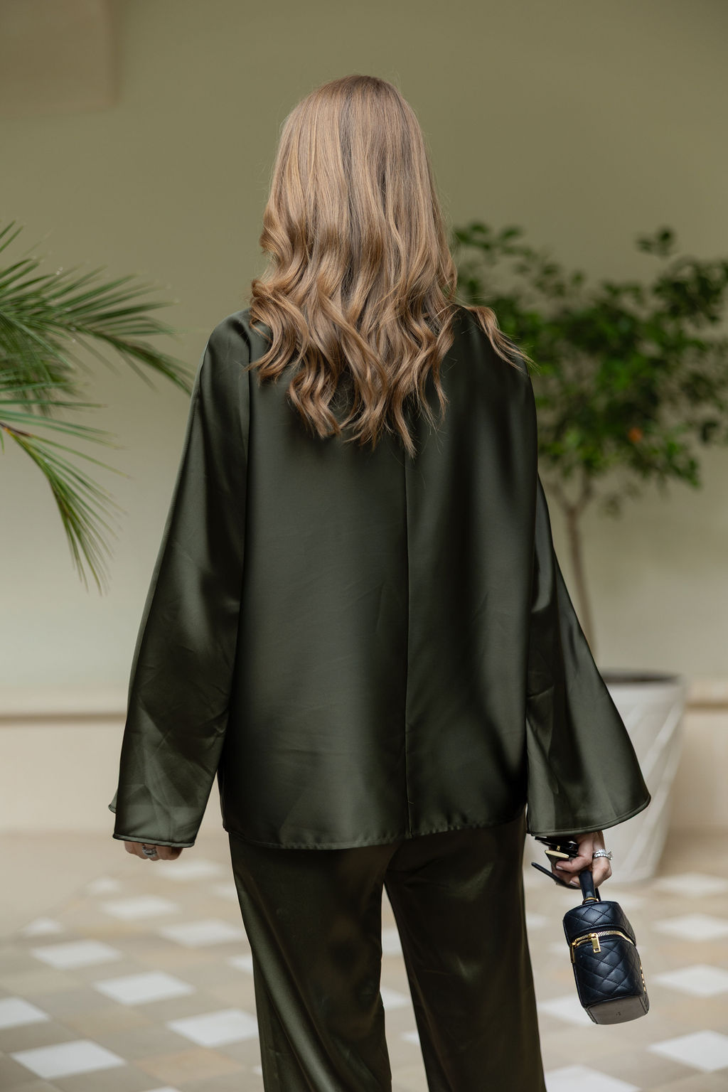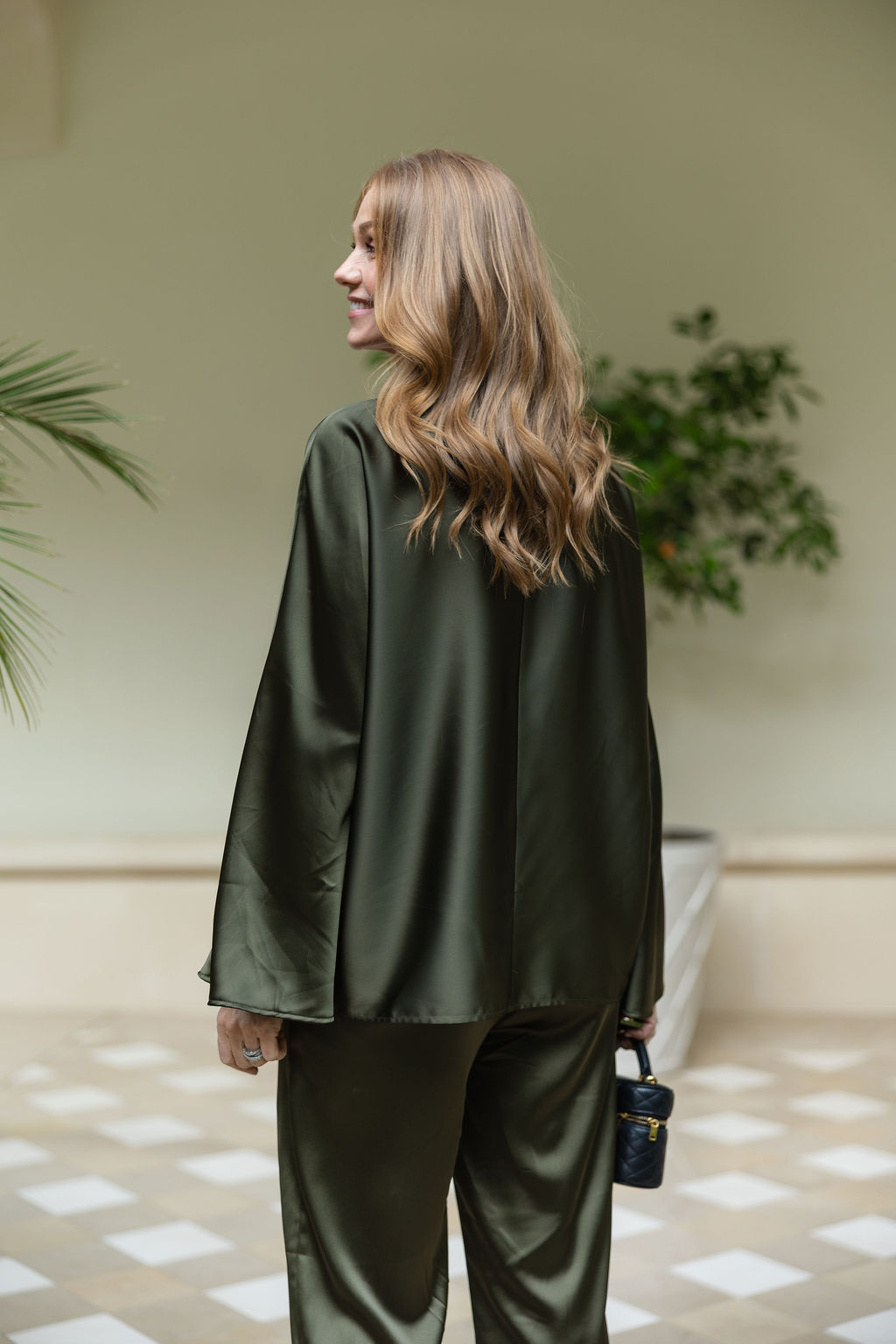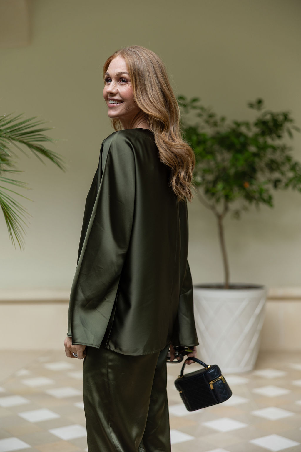 Chabli Bluse Grønn er en sofistikert og tidløs bluse i en dyp, elegant grønnfarge med en eksklusiv satengfinish. Den har en løs og flatterende passform som faller vakkert på kroppen, og gir et stilrent og avslappet uttrykk.