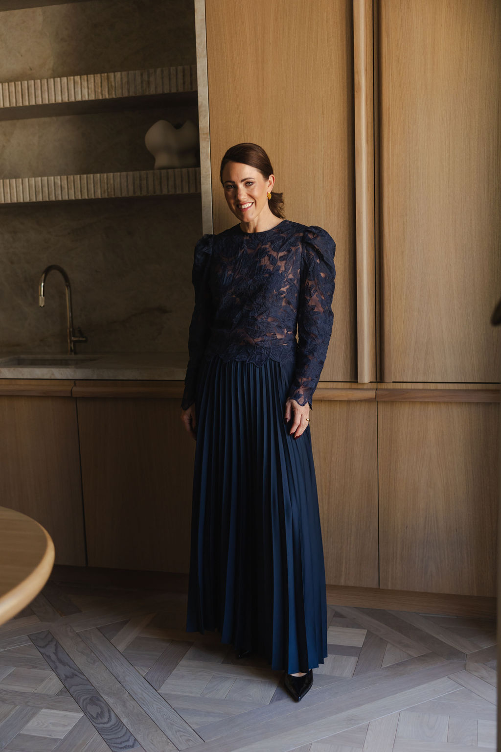 Modellen er 176 cm høy og bruker størrelse 38.