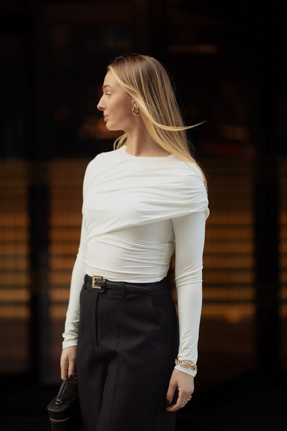 Elise Topp Creme er en nydelig langermet bluse i klassisk sort farge. Blusen har en tilsittende passform med flatterende draperinger over brystet og ryggen. Deilig og myk kvalitet med god stretch. Enkel å style opp eller ned alt etter anledning!
