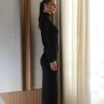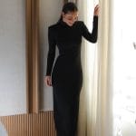Icy Kjole Svart er en sexy maxikjole med splitt. Kjolen har lange ermer, høy hals og avtakbare skulderputer som gir et kult uttrykk. Tettsittende passform og maxi-lengde, og kommer i et deilig stoff med stretch. Dette er en klassisk og tidløs kjole som kan pyntes opp og ned alt etter anledning!