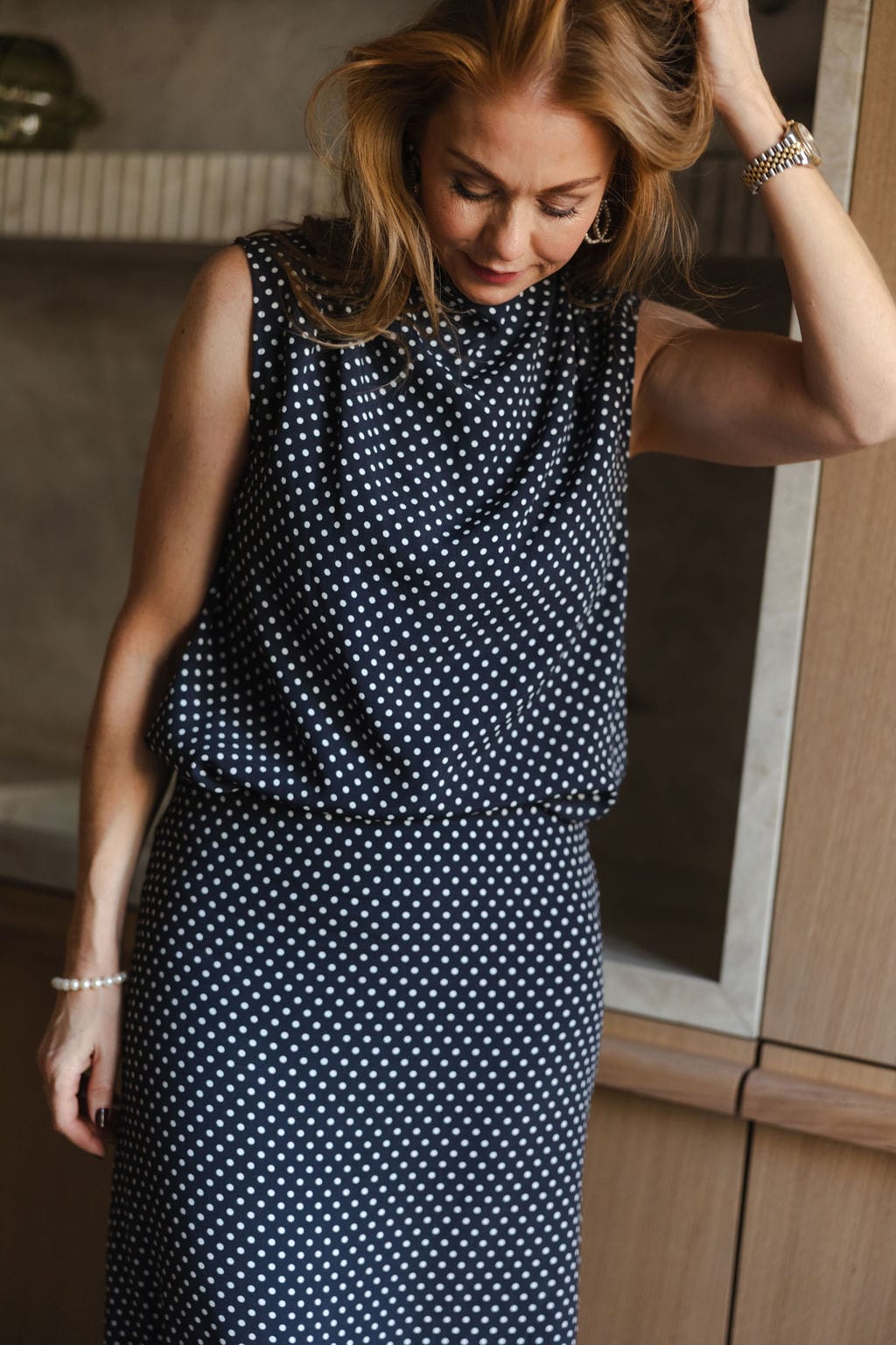 Linea Topp Prikker er en elegant topp med løs passform i en klassisk sort farge med lyse prikker. Toppen har et tidløst og minimalistisk design, med høy hals og rett fasong . Lett og luftig stoff med delikate rynkeeffekter. Lukkes med knapper i nakken. Passer perfekt til Linea skjørt prikker. KOMMER PÅ LAGER I MIDTEN AV FEBRUAR – sett deg på venteliste i dag.