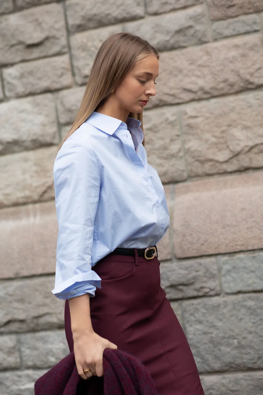 Mia blazer burgunder er en klassisk dressjakke i tidløst design. Innsvinget fasong i en lett og deilig stoff som faller fint. Slag og enkel knepping foran. Lommer med klaff foran og splitt bak. Perfekt sammen med tilhørende bukse for en full dress, men også superfin både over kjoler og jeans. Blazeren er helt normal på størrelsen.