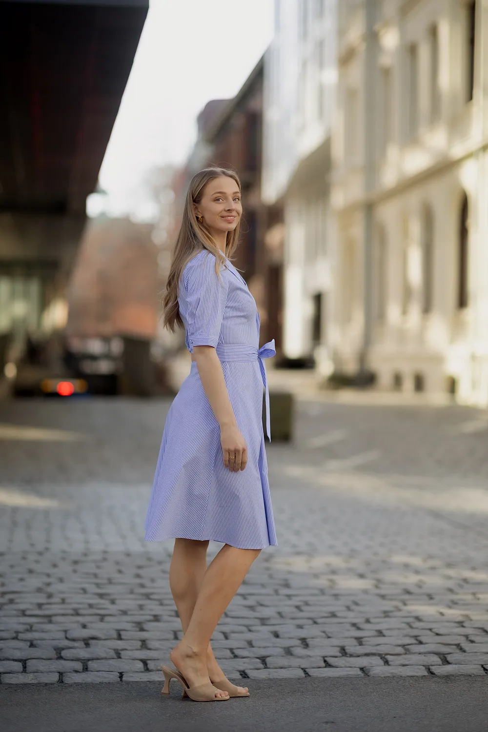 De blå/hvite stripene gjør den enkel å style med både boots, sneakers og hæler – en tidløs kjole du kan bruke sesong etter sesong.
