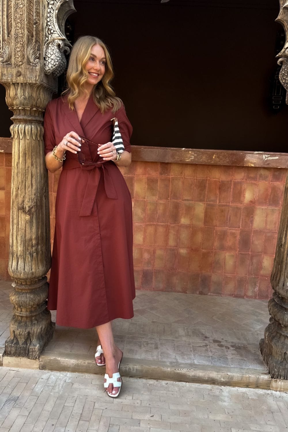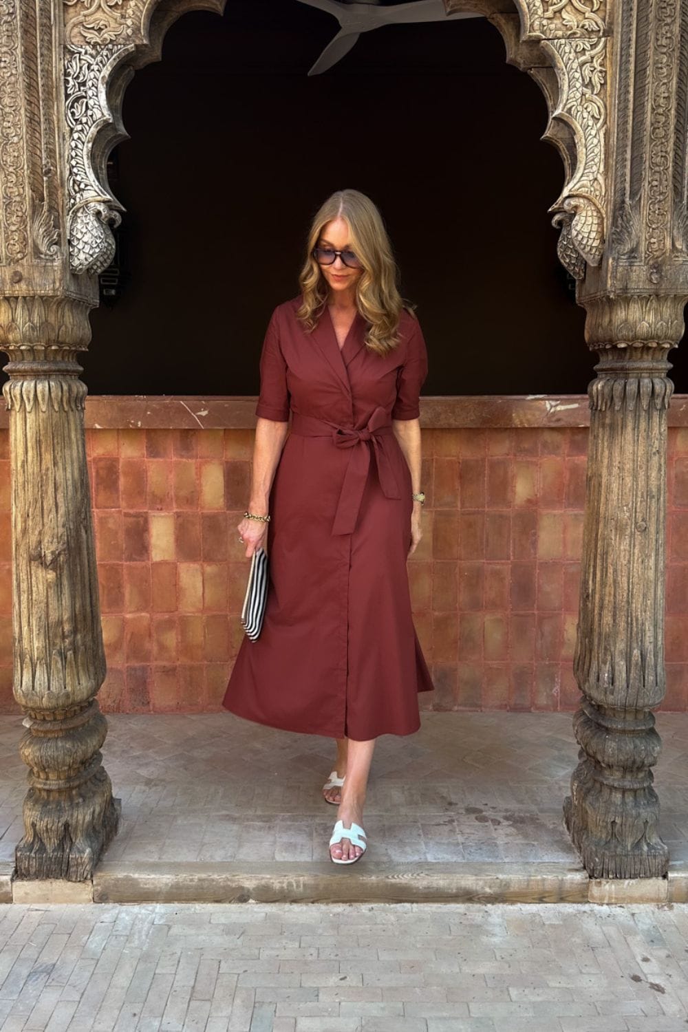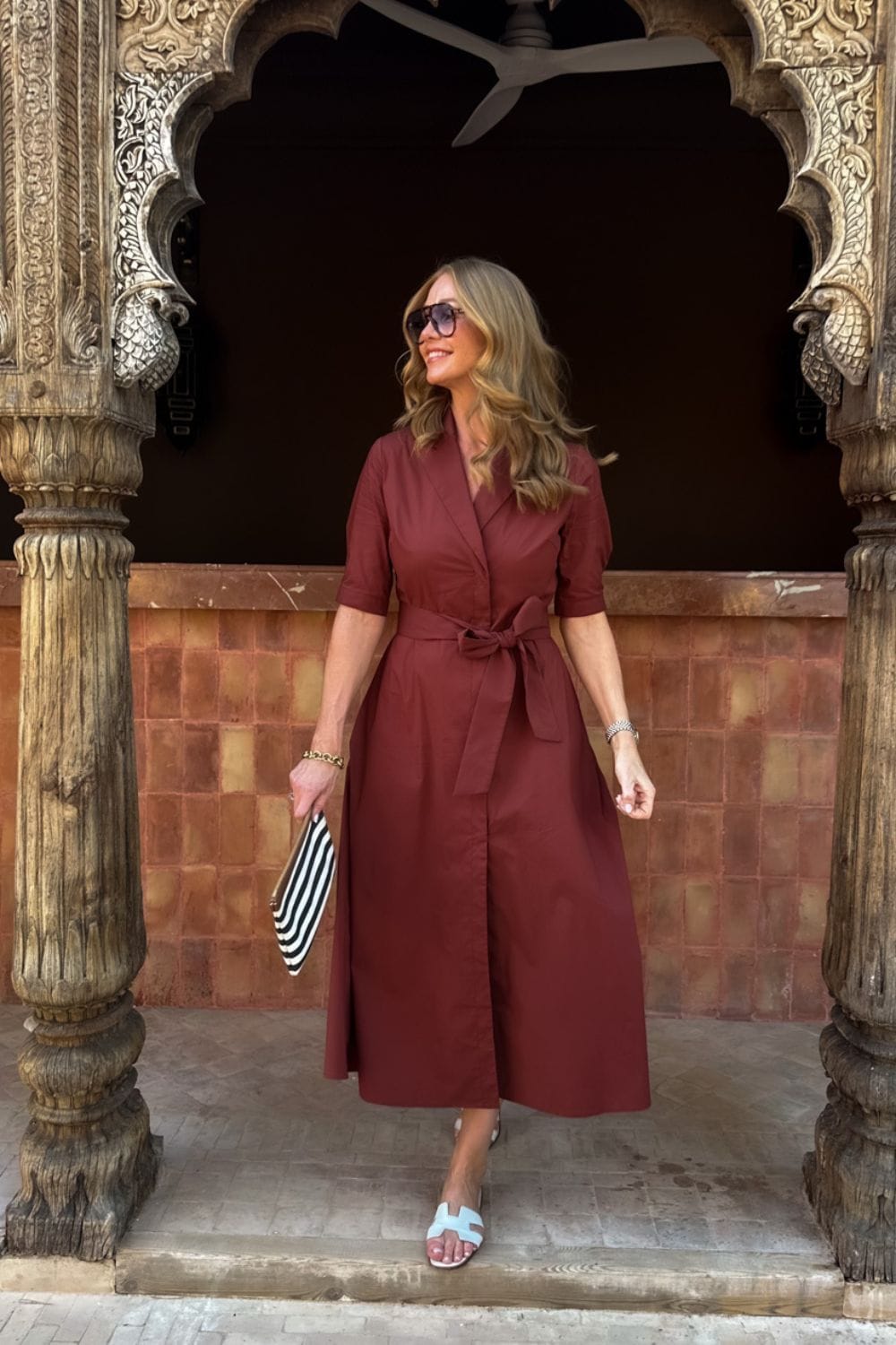 Sandie Kjole Cappuccino – Lang og tidløs hverdagskjole med belte