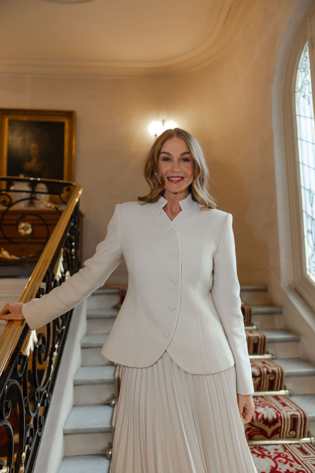 Sylvie Jakke passer spesielt godt sammen med Amelie plisseskjørt i creme og Natalia bukse i creme, for et helhetlig og eksklusivt sett.